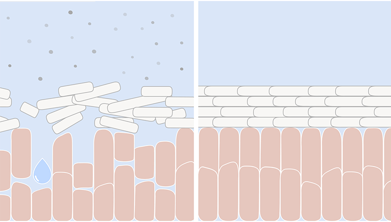 而角质层细胞之间的脂质(主要是神经酰胺)和天然保湿因子就像“水泥”一样填补细胞之间的空隙,使其连接紧密。