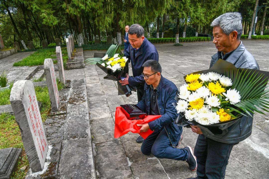 这次祭拜,一道前来的还有王文涛的叔叔王春生、湖北团风县但店镇但店村支部书记华志华。“第一次来陵园,在陵园里看到了无数家乡的烈士,作为革命烈士家乡的人民,我们要把家乡建设好。”华志华说,他今天来陵园,就是想告诉先烈们,家乡变化很大,人民群众过上了幸福美好的生活。