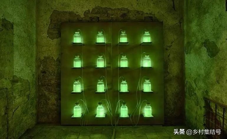 例如,博物馆里陈列着一套绿莹莹的发光装置,在满墙玻璃瓶内注入以沼气为生的转基因荧光细菌,只要源源不断地用沼气喂养这些细菌,便能实现100%生物发光,是不是很生态?