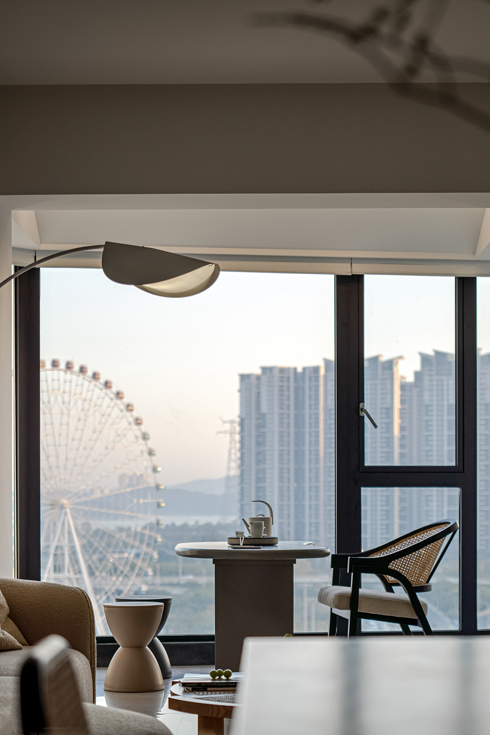 ▲此户型最大的亮点应该是可以直接从阳台看向外面的摩天轮,所以作为一个观景阳台,怎能少得了休息桌椅,闲暇之余在这里泡泡茶,跟家人聊聊天,再看看外面的风景,日子过得甚是惬意。