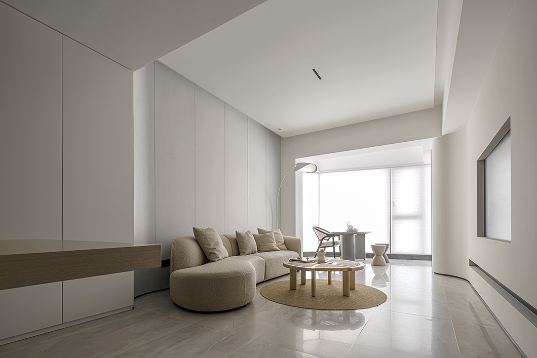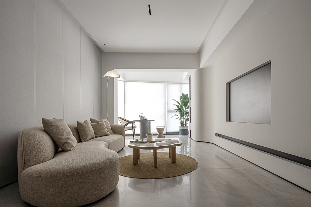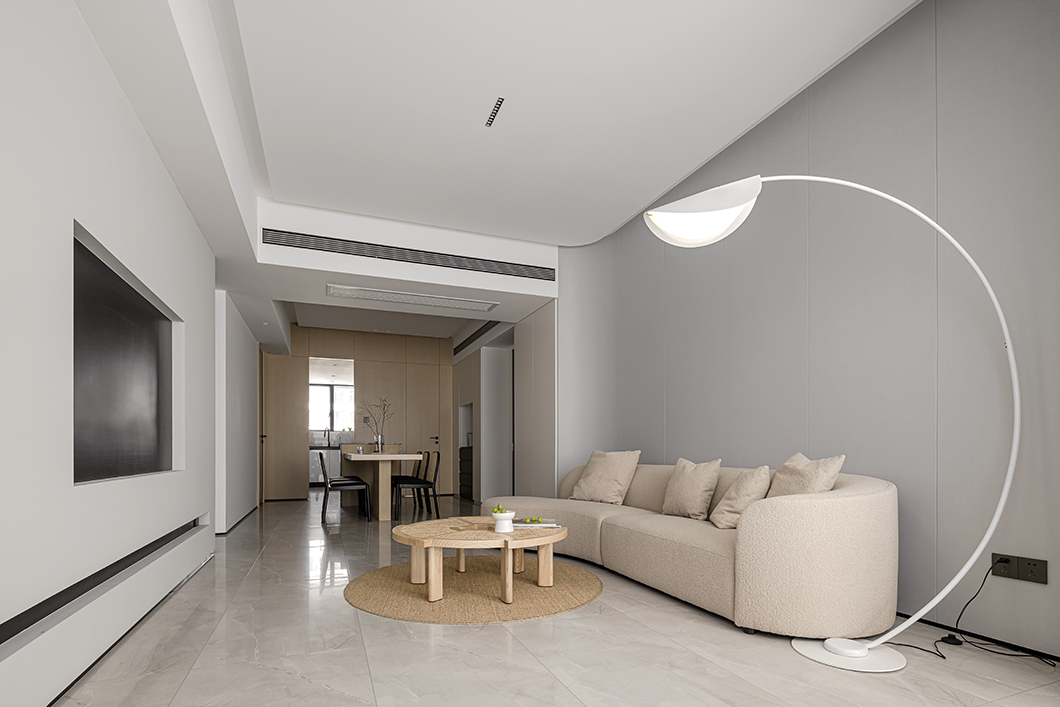 ▲阳台合并到客厅,电视墙连接阳台做弧形墙面设计,延伸性更强,视野更开阔明亮。
