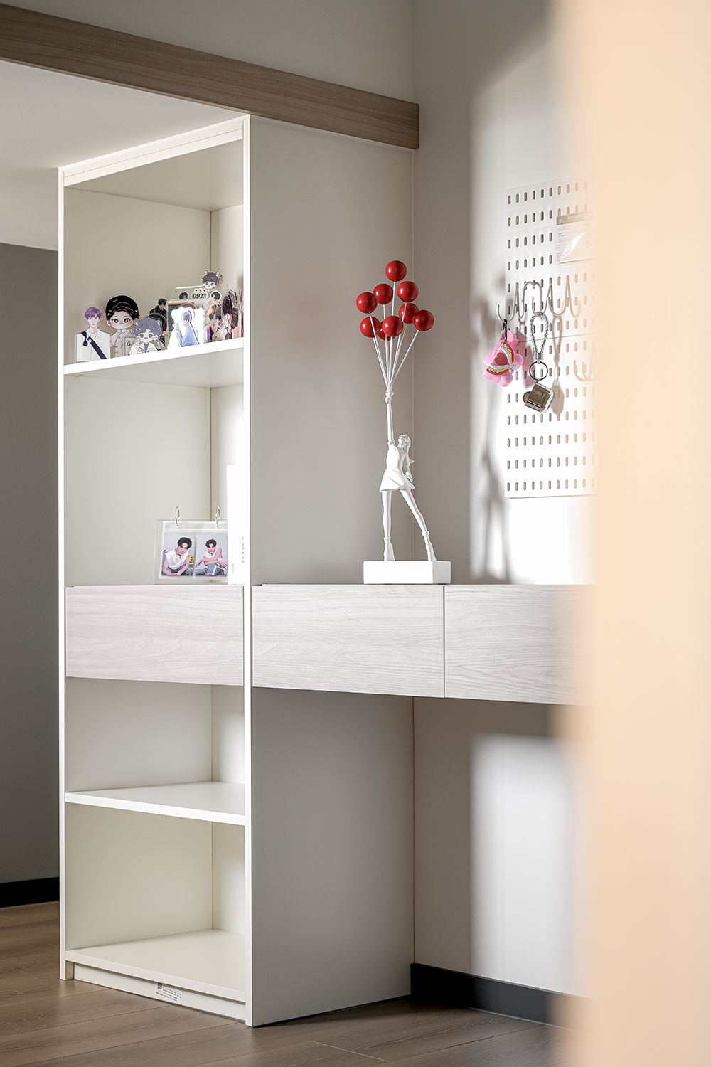 ▲开放式的书架,让拿取更加方便,给生活提供了便利。