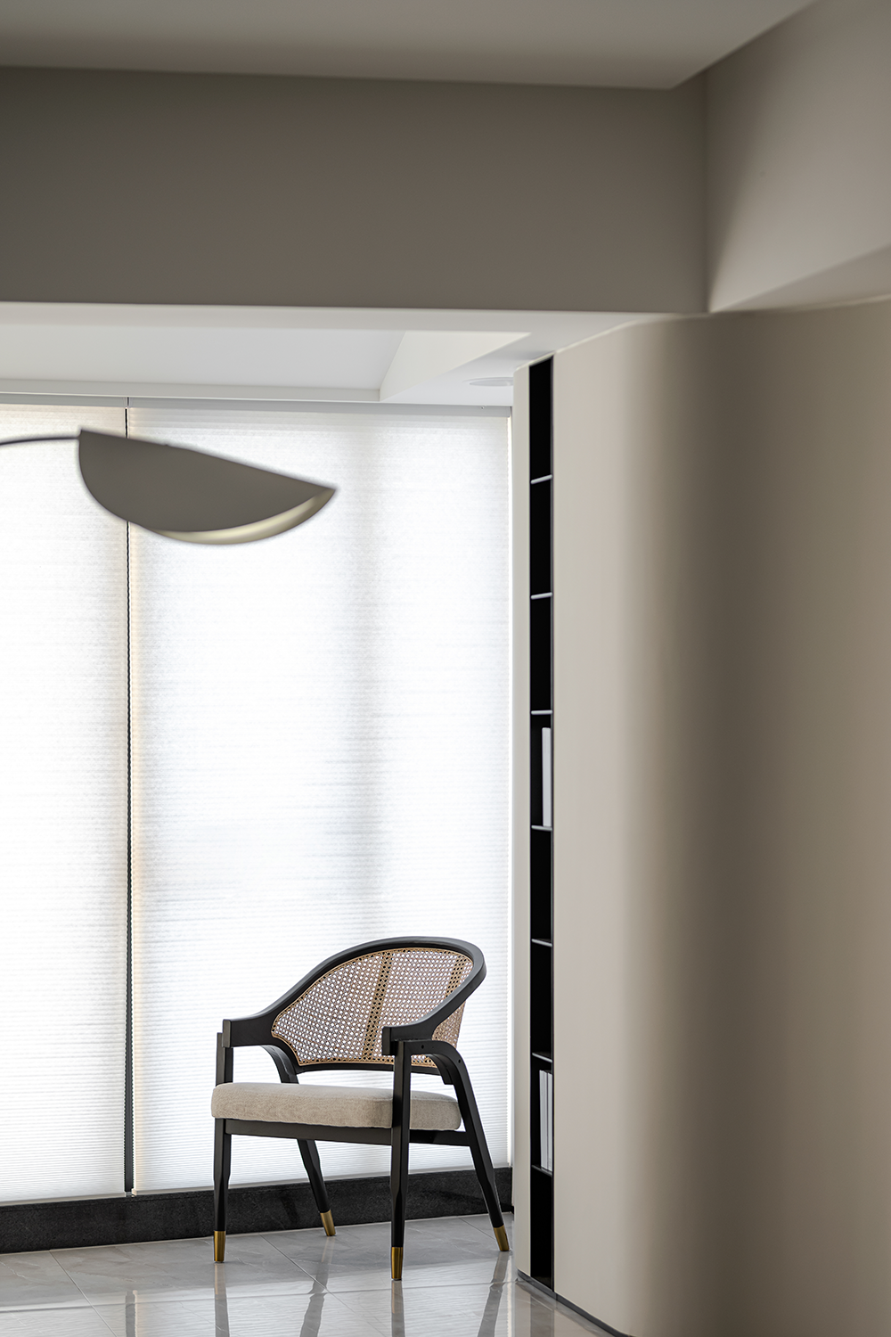 ▲黑色边框藤椅的加入,中和了客厅的色调,让其看起来不那么的单调乏味。