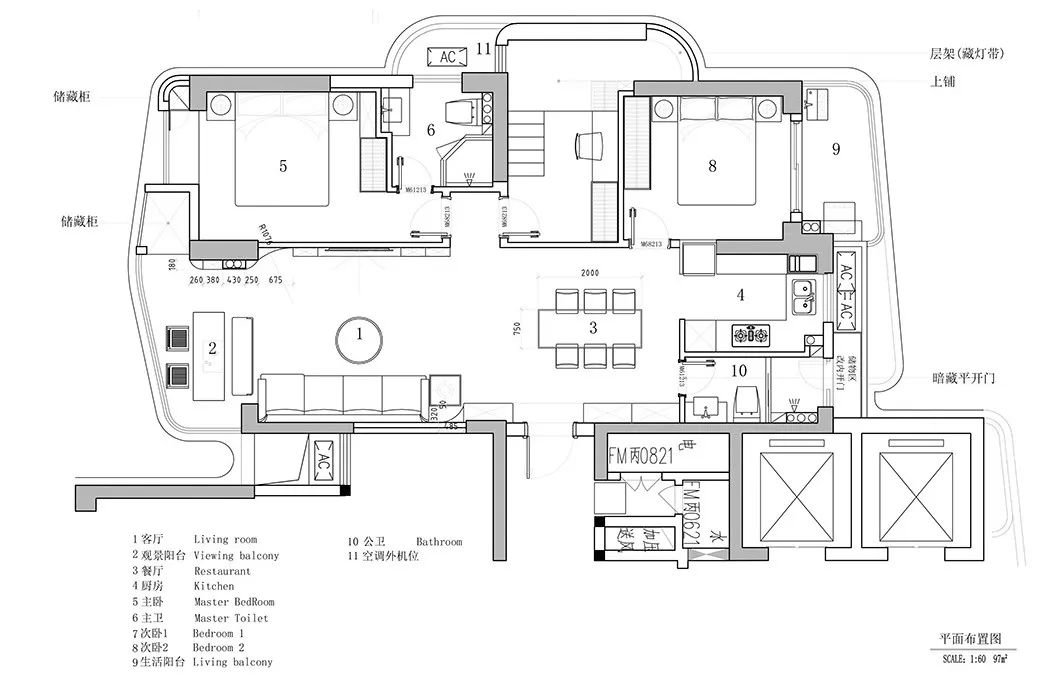 ▲由户型图可见,我们这套户型的外观很多都是圆弧形的,为了与室外呼应,设计师在室内也做了很多弧形的造型,比如天花、墙面。