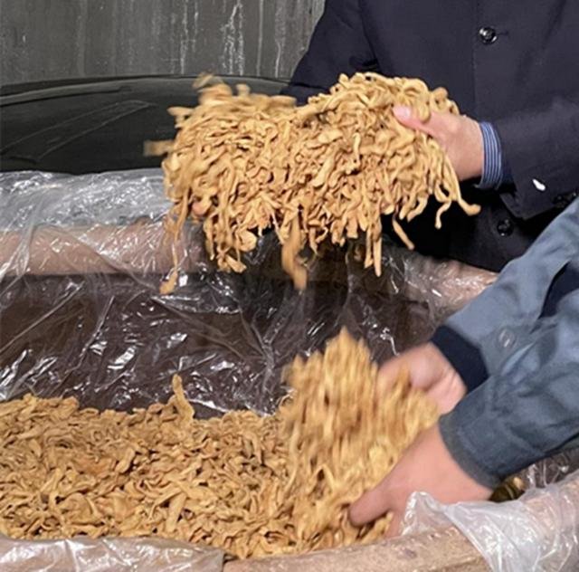 当下并非萝卜干制作旺季,杭州萧山梅西八字桥酱菜厂车间内,各类酱菜在地下发酵池中沉寂,等待着时间带来的蜕变。揭开一桶腌制好的萧山萝卜干,观之色泽暗黄发亮,可以闻到淡淡的香味。将它放入口中咀嚼,第一感觉是“脆”的冲击,接踵而来的就是“香”。