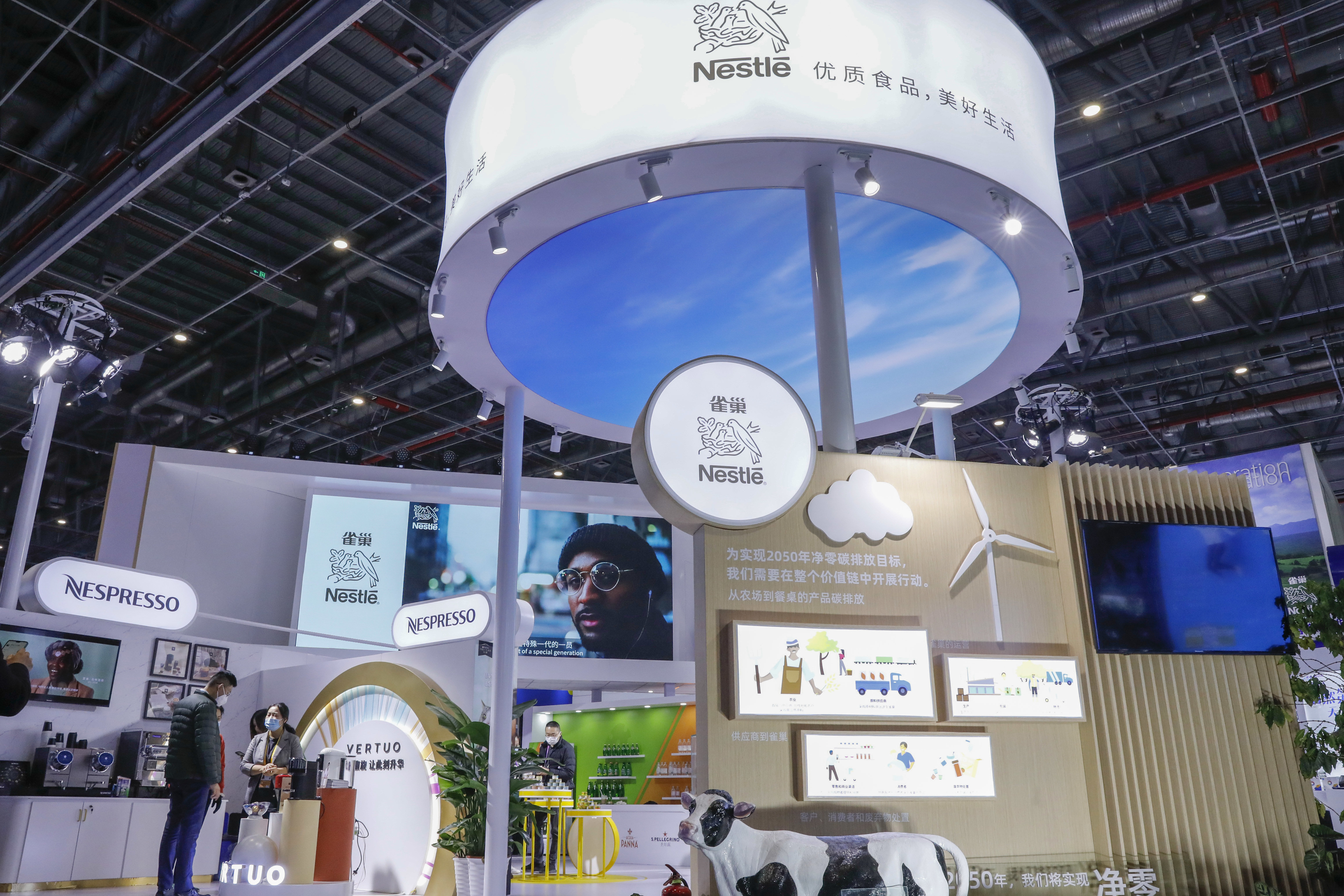 这是2021年11月9日拍摄的第四届进博会食品及农产品展区的瑞士雀巢展台。 新华社记者 张玉薇 摄