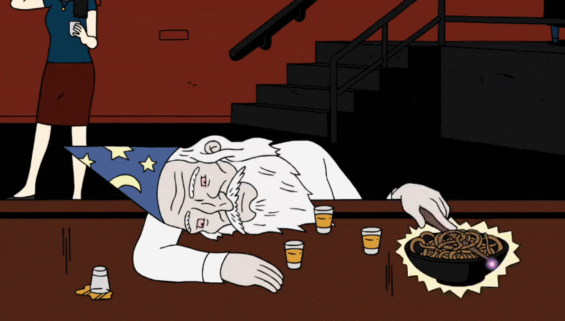 而Mark的同事Leonard(蓝能),仿佛是邓布利多的平替——会魔法、戴一顶高高的巫师帽、最重要的是脸上毛发分布和邓布利多高度相似。