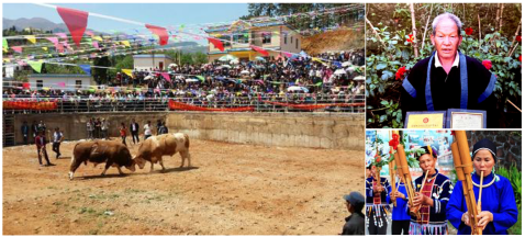 图6 斗牛节(左图)、省级非遗传承——银饰制作(右上)、唢呐演奏(右下)