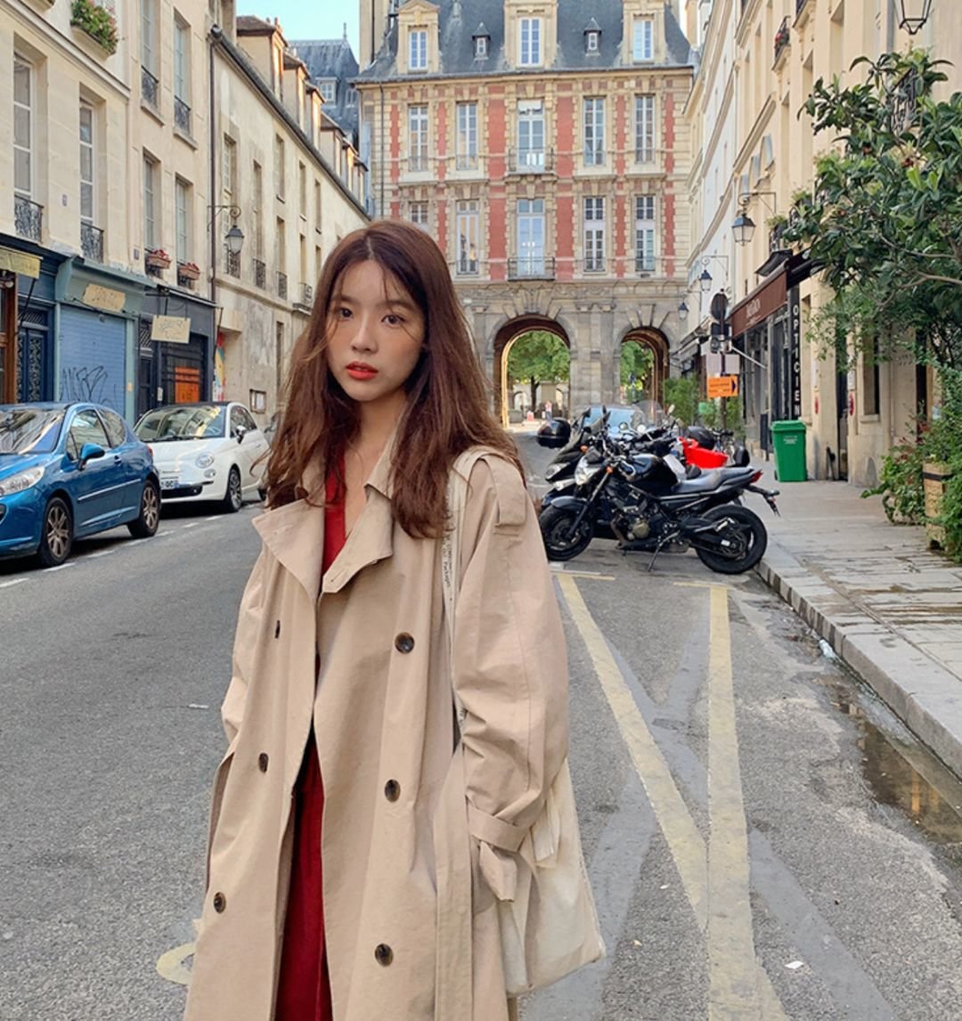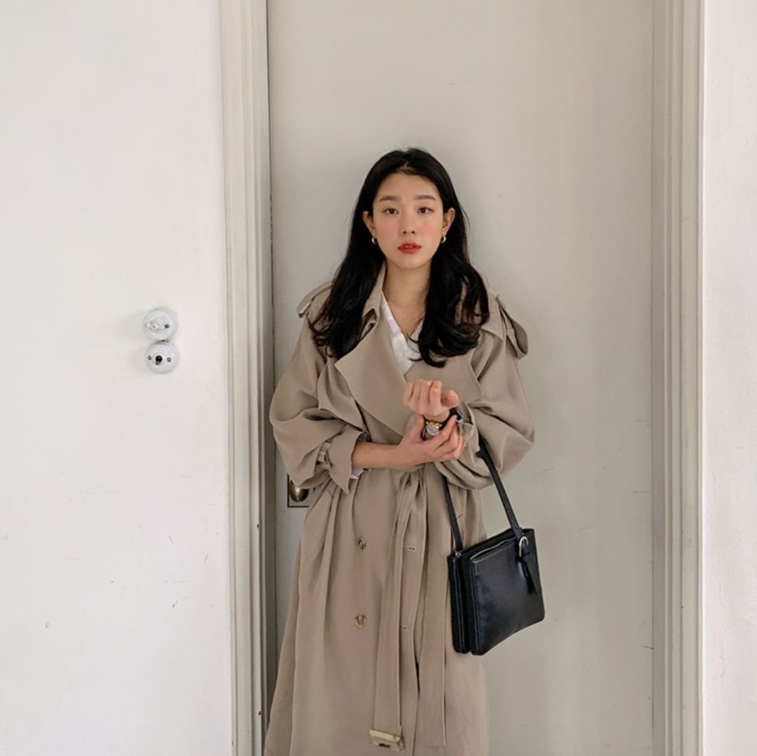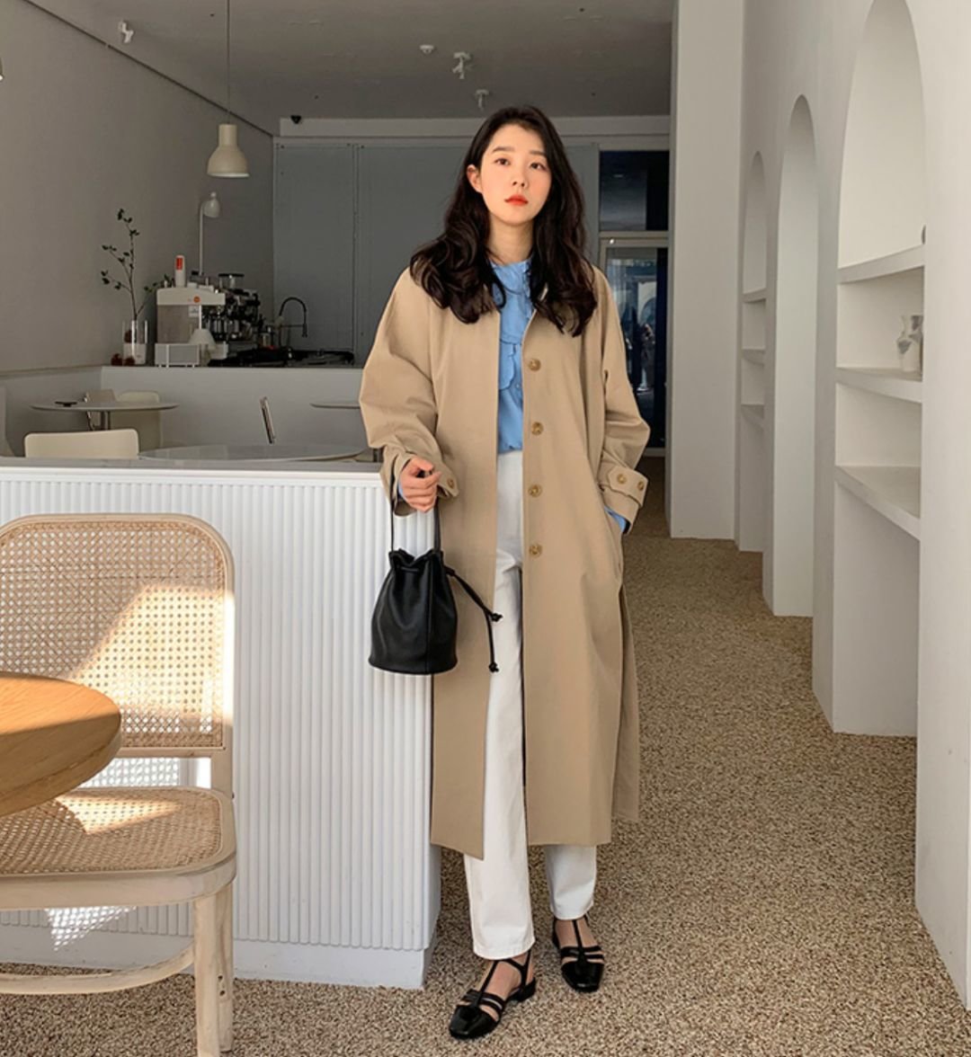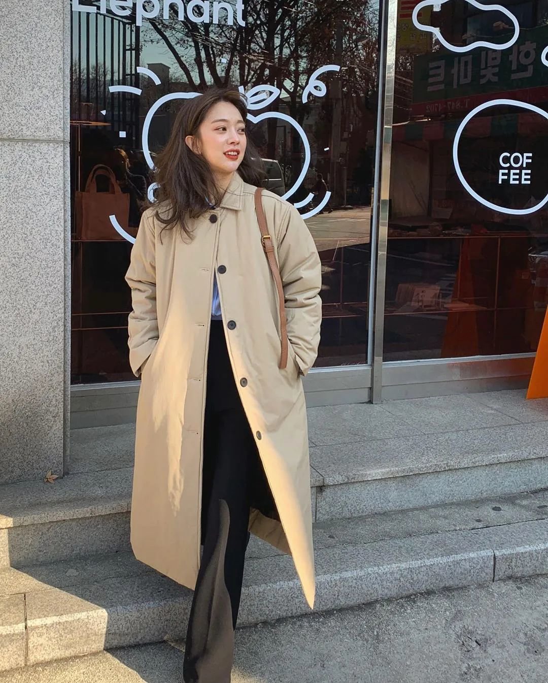 尽管如今流行的风衣颜色越来越多样化,但韩国女孩更喜欢最百搭的卡其色、灰色。