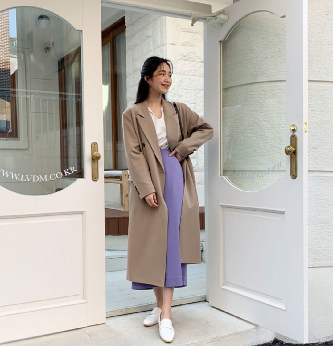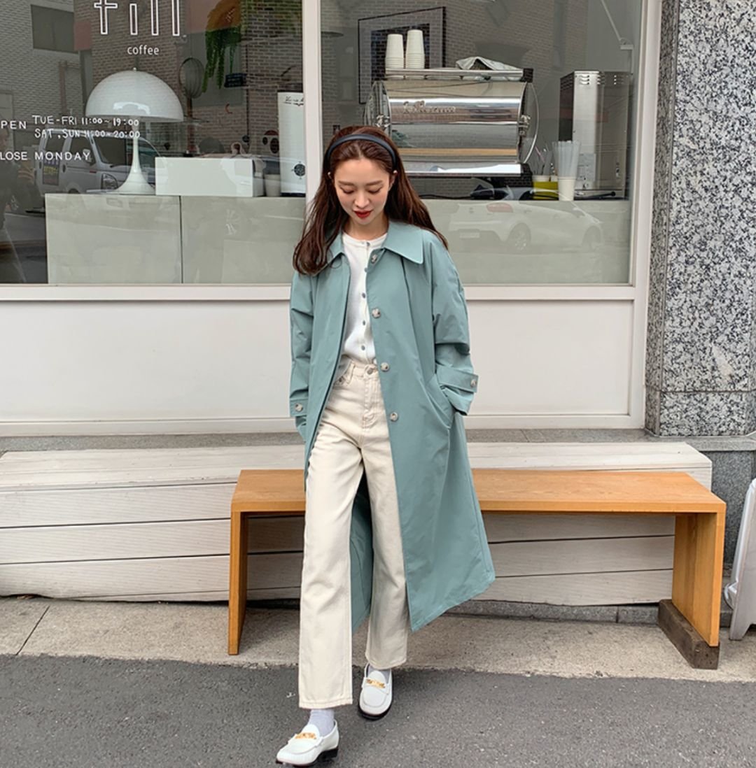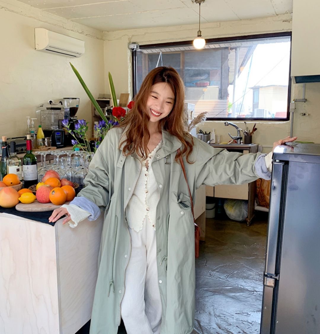尽管如今流行的风衣颜色越来越多样化,但韩国女孩更喜欢最百搭的卡其色、灰色。