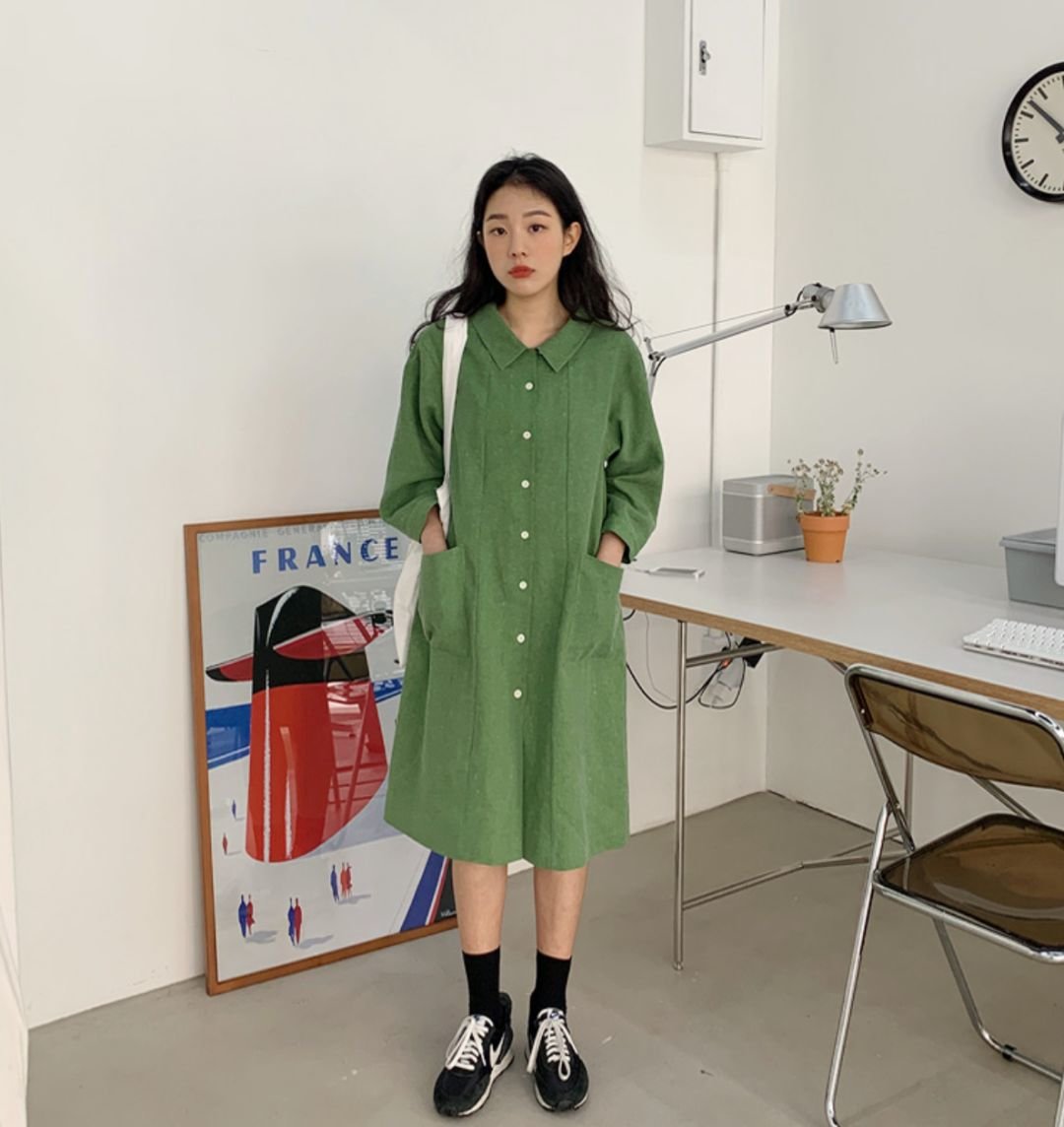 喜爱简约风格的仙女们可以来得到衬衣裙的穿搭。