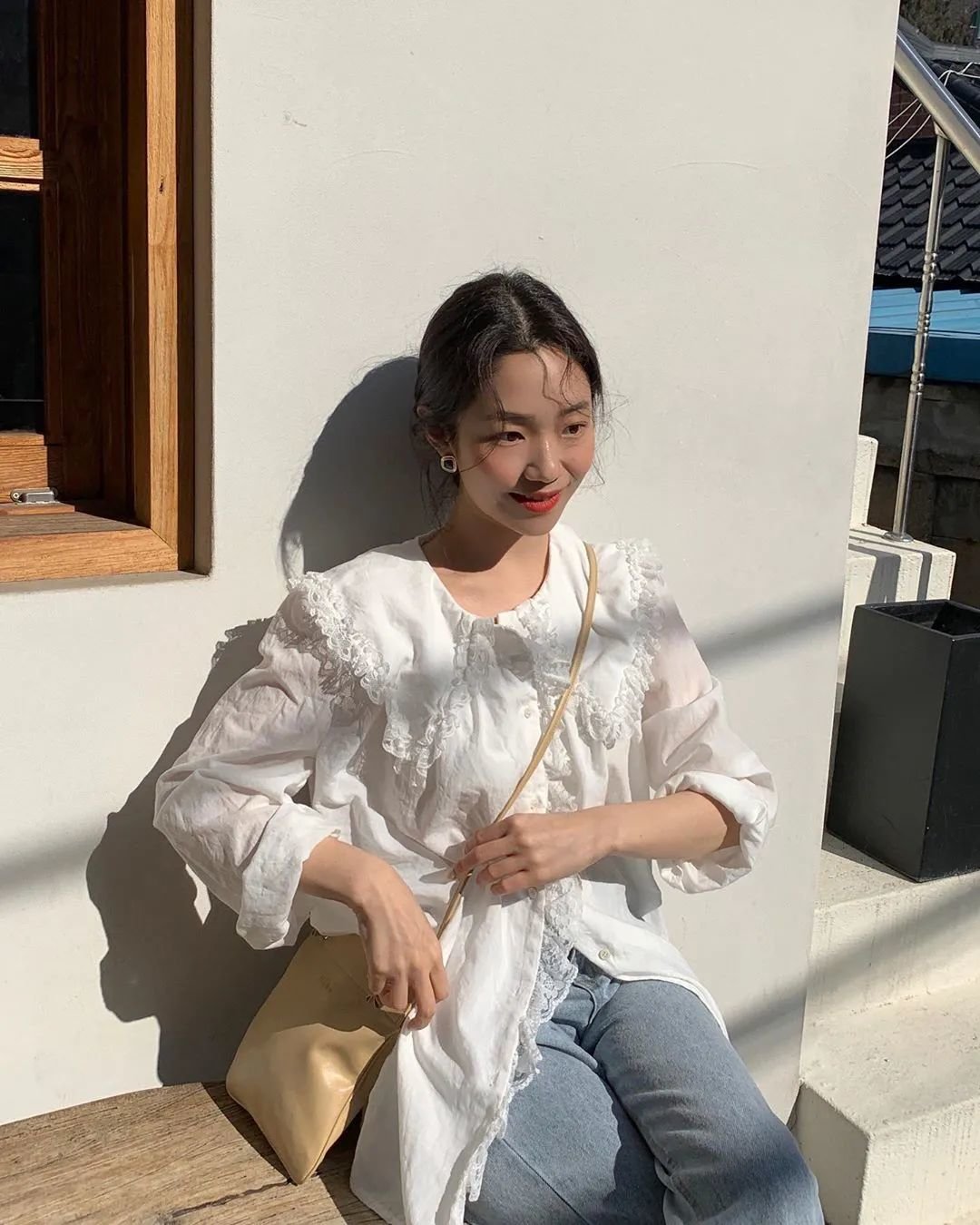 随着天气越来越暖和,是各种气质衬衫的家。同样是最百搭的白衬衫,韩国女生通常更喜欢这种有细节感的款式,更加优雅精致。无论是搭配牛仔裤还是超短裙,都给人一种温柔柔和的感觉。