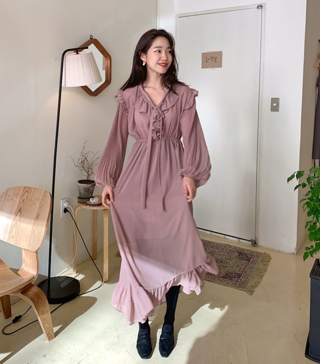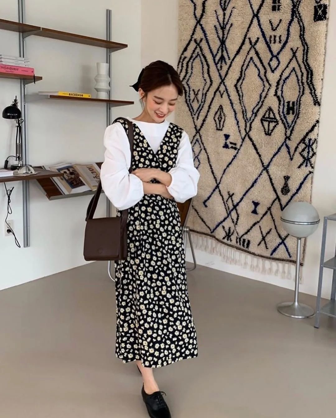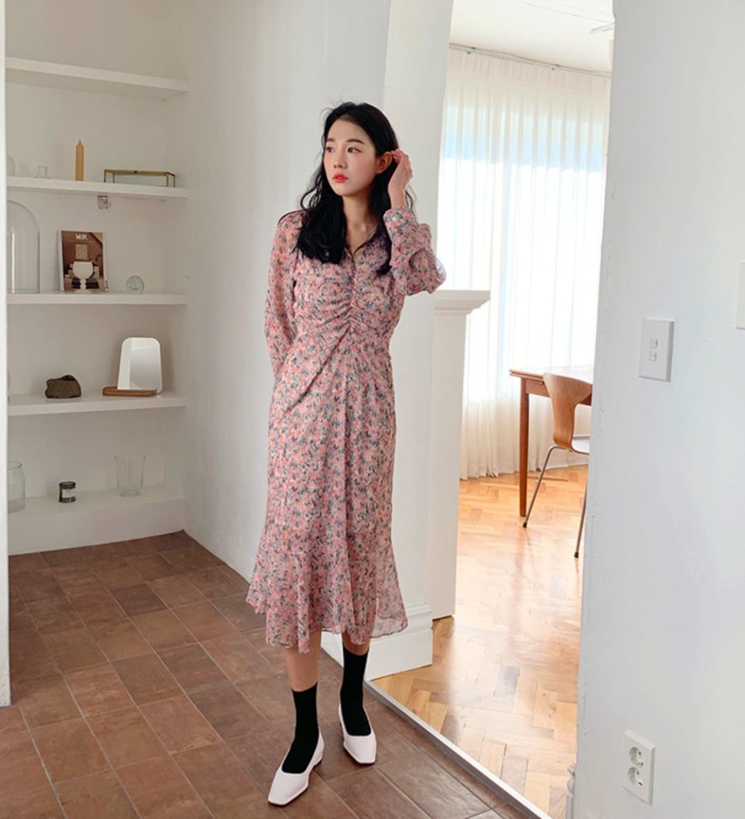 在韩国,碎花裙也是欧尼人的心头好,她们一般都会选择这种比较素雅清新的款式,给人一种阳光明媚的感觉。