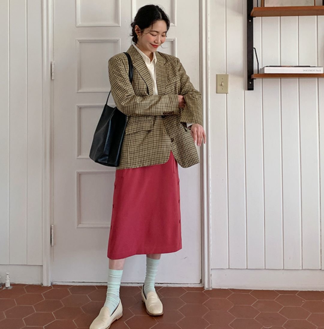 与高跟鞋相比,韩国小姐姐们在春天穿着平底鞋时更喜欢搭配平底鞋,自然而舒适。