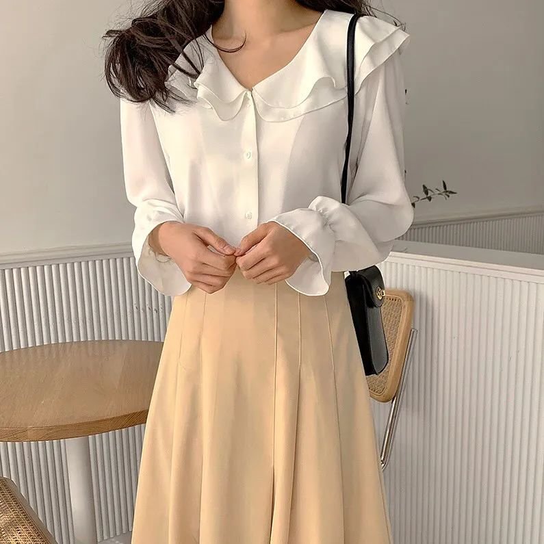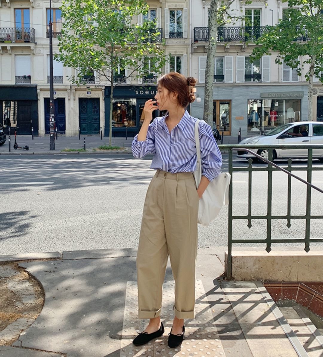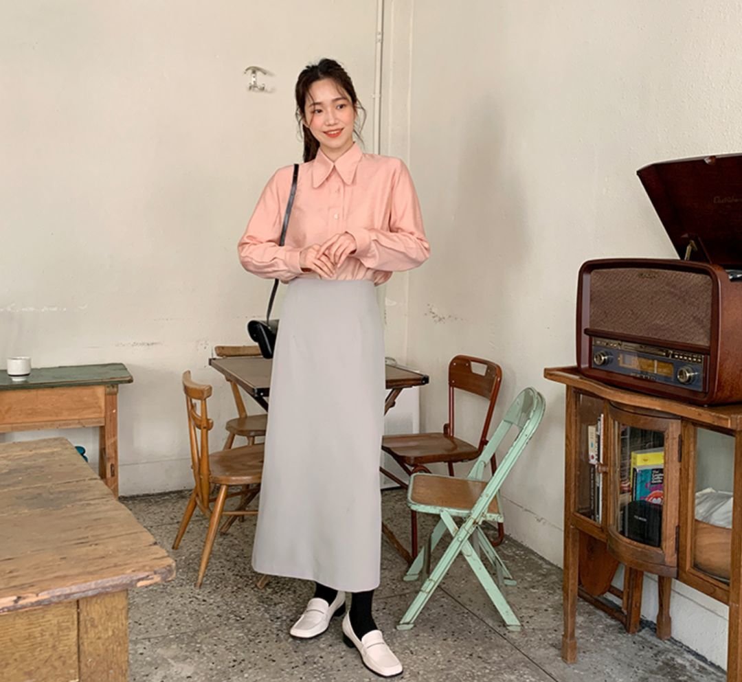 韩国女孩很喜欢温柔的莫兰迪色系衬衣,清新养眼,提气色,穿上可以让你在几秒钟内成为韩剧女主角。