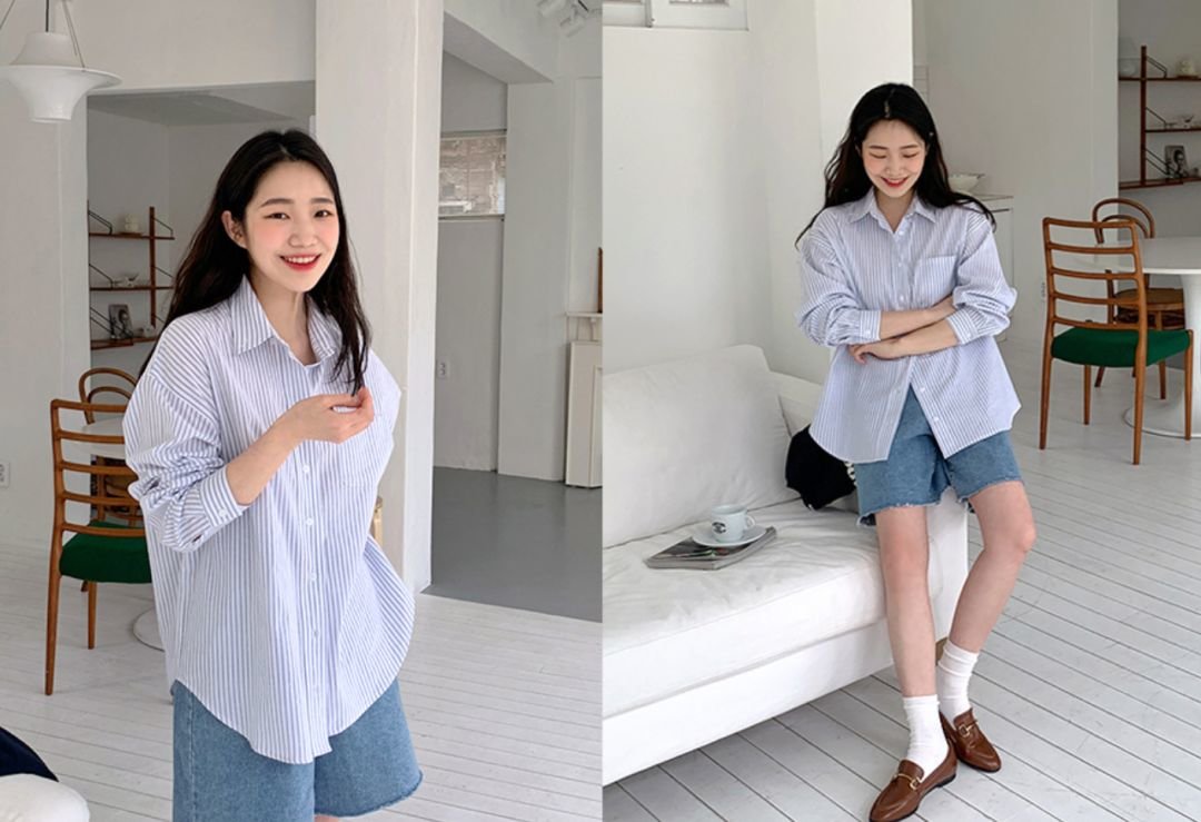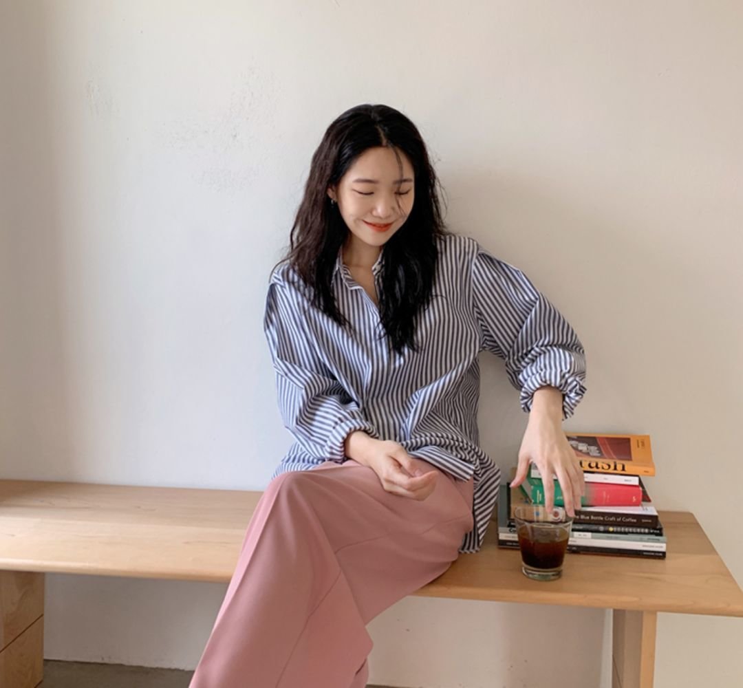 这件条纹衬衣也是欧尼人的心头好,清新明亮,非常有春夏气息。