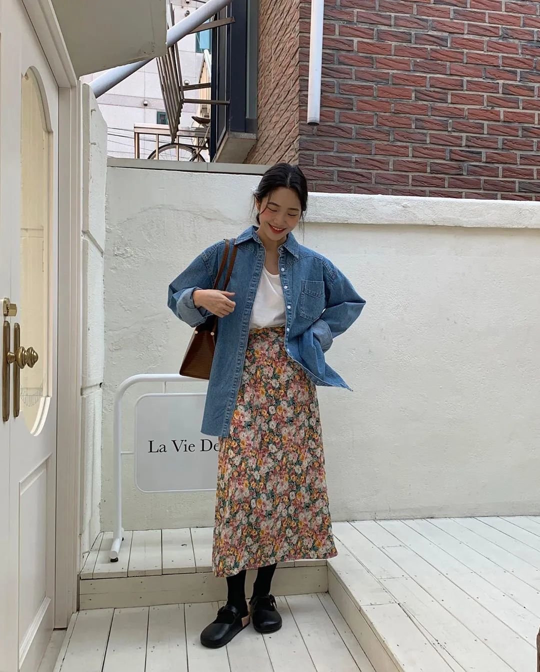 一直给人酷帅印象的牛仔衬衫,在韩国小姐姐们的诠释下,也能诠释出不一样的甜蜜。搭配仙女裙,不一样,好看又迷人。