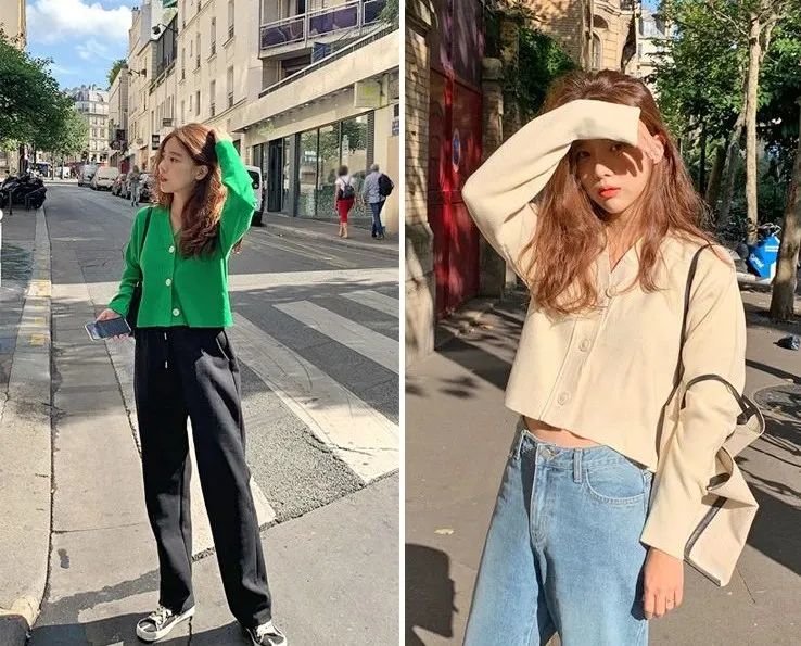 单独穿着时首选短款奶奶衫,不管是裙子还是裤子组cp都很好看。