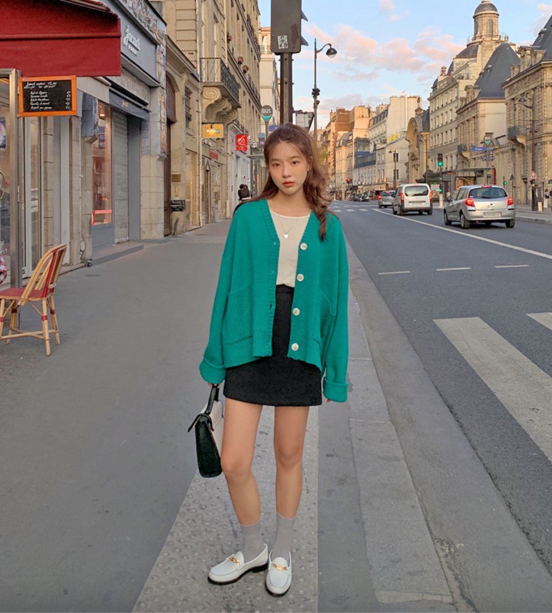 今年春天很流行的奶奶衫不但能打造出法式复古风格,演绎韩系小姐姐风格也是一种得心应手的节奏。