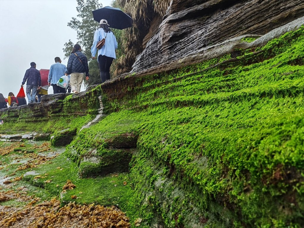 3月31日,广西北海市涠洲岛五彩滩景区附着有大量的藻类,有绿色,也有黄褐色。据了解,涠洲岛往年气候回暖时,也出现过类似情况。五彩滩曾名“芝麻滩”,取自黑白相间的沙滩,后因与海滩上的火山岩和青苔组成了斑斓的色彩,而被称为“五彩滩”,是涠洲岛的一个主要景点。