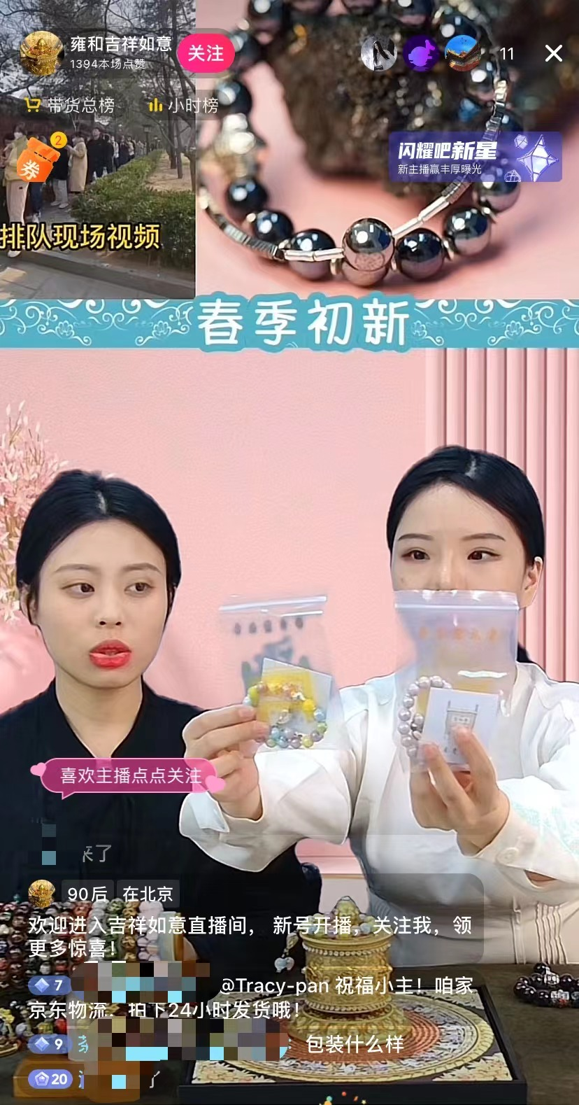 文娱明星等公众人物引发的“明星同款效应”也为雍和宫手串带来了流量加持。时代少年团丁程鑫、任嘉伦等人也佩戴上了雍和宫手串,为其大范围传播加了一把火。