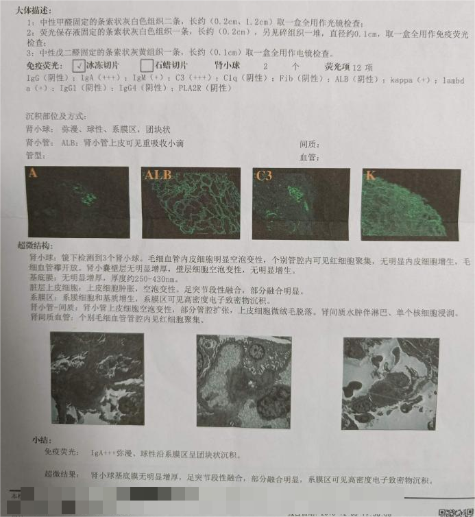 2018年11月底确诊了,一场感冒发烧,出现肉眼血尿,化验肌酐81,24小时尿蛋白定量2.34克,红细胞1935。