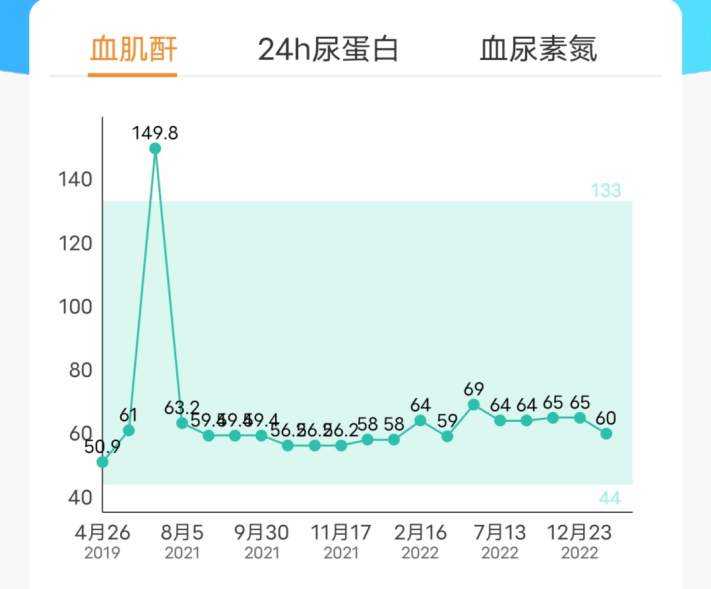 注:肾上线APP上传化验,可自动生成像作者这样的趋势图,方便大家对指标进行管理