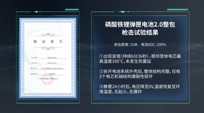 但是不管怎么说,很开心能看到,国内汽车企业能在电池安全上不断进步。广汽埃安突破性研发了超稳电极界面、阻热相变材料、电芯灭火系统等一系列原创安全技术,实现了极致的电池安全防护,的确是在研发上投入了巨大精力。广汽埃安弹匣电池包能通过枪击试验,在电池安全值得肯定,可喜可贺。