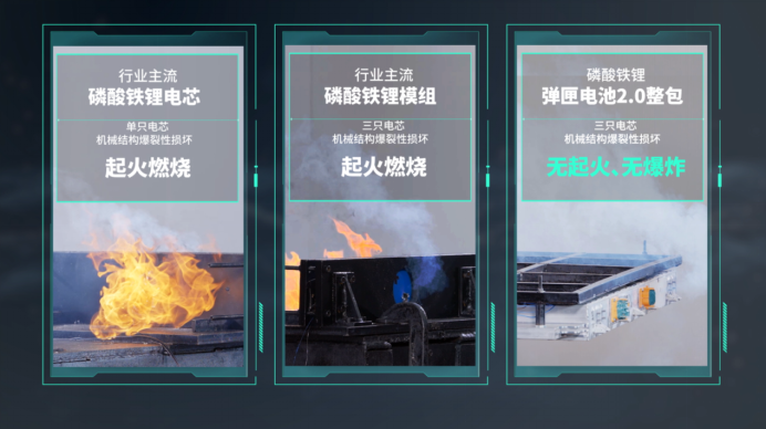 在广汽埃安的试验中,我们也看到,除了通过枪击试验的弹匣2.0电池包,用作对比的还有“行业主流磷酸铁锂电芯”和“行业主流磷酸铁锂模组”,其实都是电池单体,模组也只是三块电池叠在一起。用姚昌晟的话来说,“几乎无法幸免于热失控的发生”。