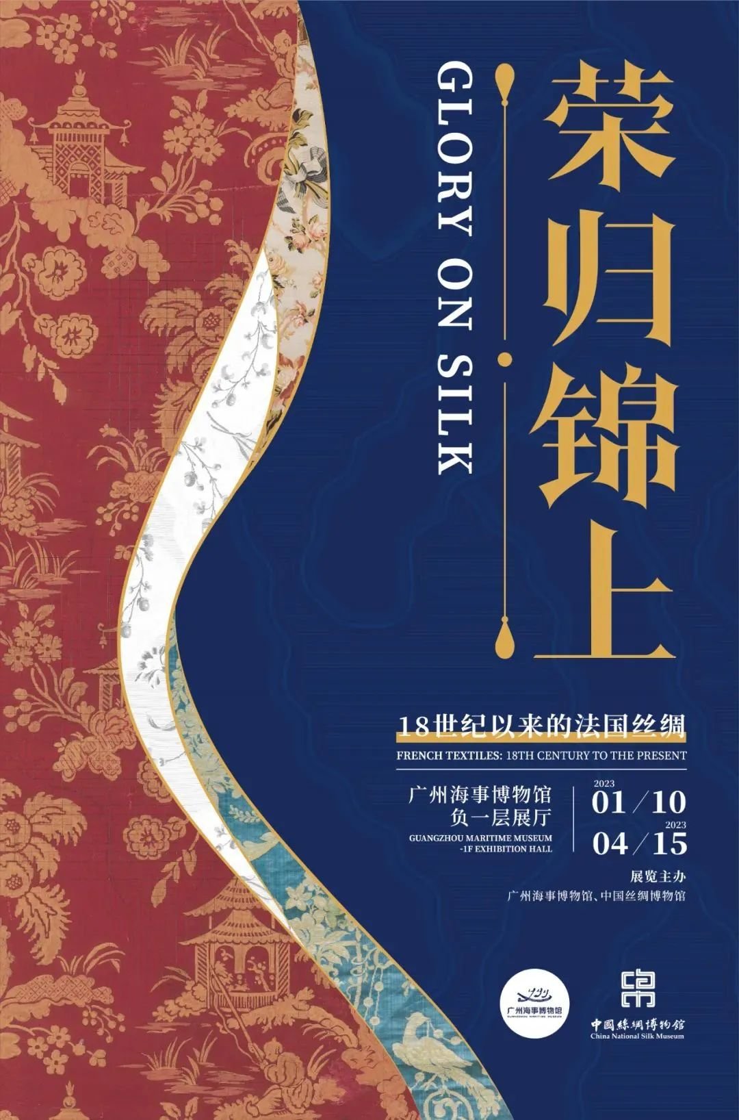 本次展览以展现法国丝绸概述、法国丝织生产过程、法国丝绸种类及艺术风格、当代法国丝绸的继承与创新为主题,以18世纪以来的丝织精品、设计稿、意匠图等工艺解说、时装画报、服饰、品牌产品、广州外销艺术品为主要展品,共计约100 余件/组,包括路易十四时期巴洛克风格红地独幅对称花织物,18世纪蓝地中国风建筑纹提花织物,黄地花卉建筑纹样妆花缎,18-19世纪洛可可风、中国风、新古典主义、自然写实主义手绘意匠图和设计稿,19世纪白色网纱花鸟纹蕾丝帽,1999年迪奥品牌彩色莱茵石钉珠套装等。此外展览还展出了广州海事博物馆收藏的广州外销艺术品。