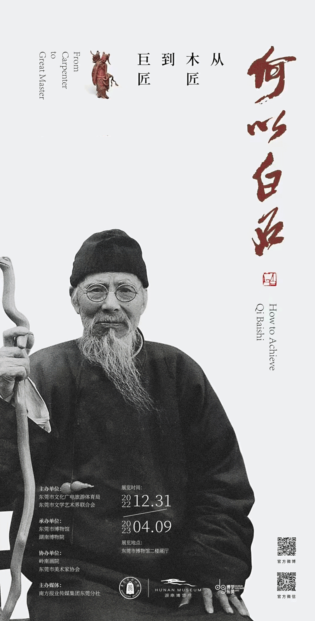 展览展出湖南博物院藏齐白石绘画、印章、木雕作品共70件,以齐白石艺术生涯为脉络,梳理齐白石各时期的艺术作品,从“吾草木众人也”“我书意造本无法”“吾所能事者乐事”三大部分,回应展览题目“何以白石”,是什么成就齐白石的设问,让观众体悟齐白石近百年的艺术人生和自适其适的乐观心境,浑然天成的艺术个性以及蓬勃向上的艺术创造力。