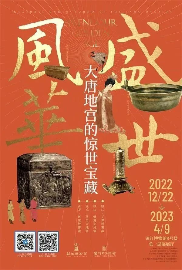 此次展览集结了陕西地区3家博物馆以及镇江博物馆的精美展品共117件(组)。其中珍贵文物98件(组),包括一级文物40件(组)。在这117件(组)展品里,以宝鸡法门寺地宫、西安何家村窖藏及镇江丁卯桥窖藏出土的金银器为主,这也是唐代三大金银器窖藏的首次联袂展出。一件来自法门寺地宫的大银盆,它制作于润州(今镇江),被进贡到长安(今西安),本次展览是它于千年之后重回故里。
