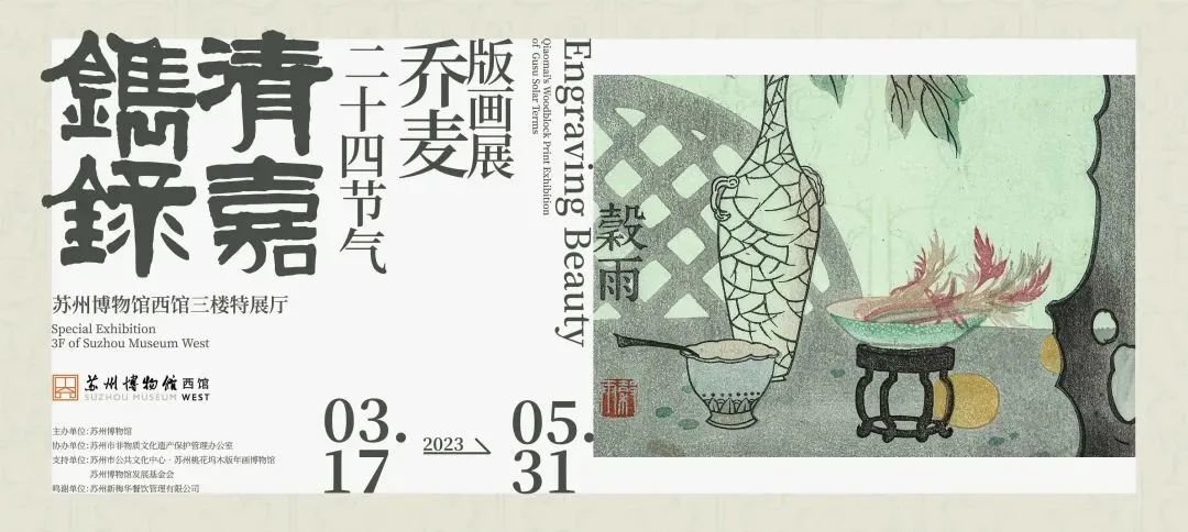 桃花坞木版年画是苏州民间美术的代表,始于明,盛于清,继承了宋代的雕版技艺。本次展览作品“姑苏24节气食景图”融合苏博馆藏名家书画花卉、瓷器等元素,以最传统的桃花坞木版年画技艺,体现苏州气象万千的生活景象,在美食中窥见姑苏丰富多彩的饮食文化与岁时风物。