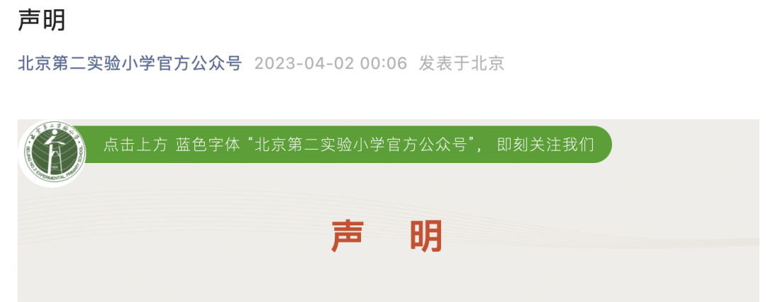 针对有家长反映学生在评优中“受到不公平对待、被班主任唆使全班孤立”等问题,4月2日凌晨,北京第二实验小学官方微信公众号发布声明称,学校成立专门调查组开展调查,“孩子所在班级有关推选工作规范、透明,不存在违规行为,班主任未唆使或怂恿其他同学霸凌和孤立孩子。”