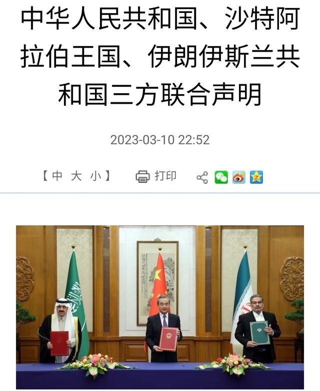 最近中国外交当中经常听到联合声明一词,比如中俄关于2030年前中俄经济合作重点方向发展规划的联合声明、深化新时代全面战略协作伙伴关系的联合声明,还有中国、沙特、伊朗的三方联合声明,通过对话和外交方式解决双方分歧。这种声明往往体现在各方在某些问题上具有高度共识,愿意以文件形式确立相关权利和义务,昭告天下。