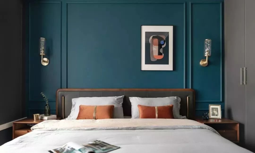 将床头背景设计成画,不仅具有强烈的个人色彩,还能让装饰效果发挥最大,让空间充满浓郁的艺术感。