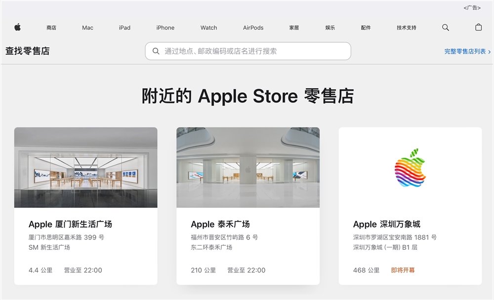 站长之家4月3日消息:据苹果官网显示,苹果在深圳的第二家 Apple Store 万象城店即将开幕。