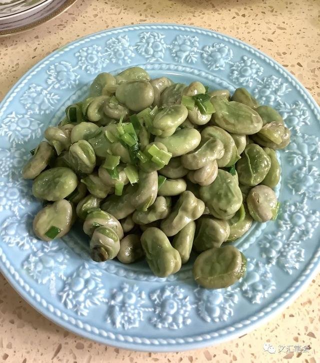 蚕豆,在吴语中称“寒豆”,豌豆则称“小寒”。我想,这大概是与蚕豆耐寒有关吧?在江南,隔寒播种豆种,初春就在田边萌生豆苗了。它在营养生长期所需的温度比较低,即使遭遇冰雪,也不太容易冻坏。一旦阳气上升,便蓬勃舒展绿叶。南宋词人杨万里写有咏蚕豆的诗句:“味与樱梅三益友”,说明蚕豆是与樱桃、梅子同时上市的。如今蔬菜大棚里四季如春,加上物联网越来越发达,从海南和广东过来的“客豆”,元宵节后不久,就迫不及待地纷纷造访。本地产的蚕豆则姗姗来迟,进入厨房几乎要相差三个月。然而它豆荚饱满,豆粒糯软,用葱油生煸,就成为一道难忘的家乡风味。