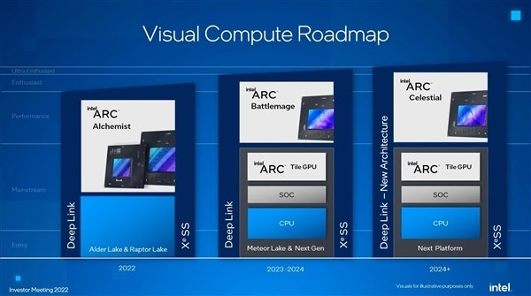 第三代“Celestial”(天人),这代会进入发烧级市场,也就是直接刚AMD及NVIDIA顶级显卡,架构全新开发。