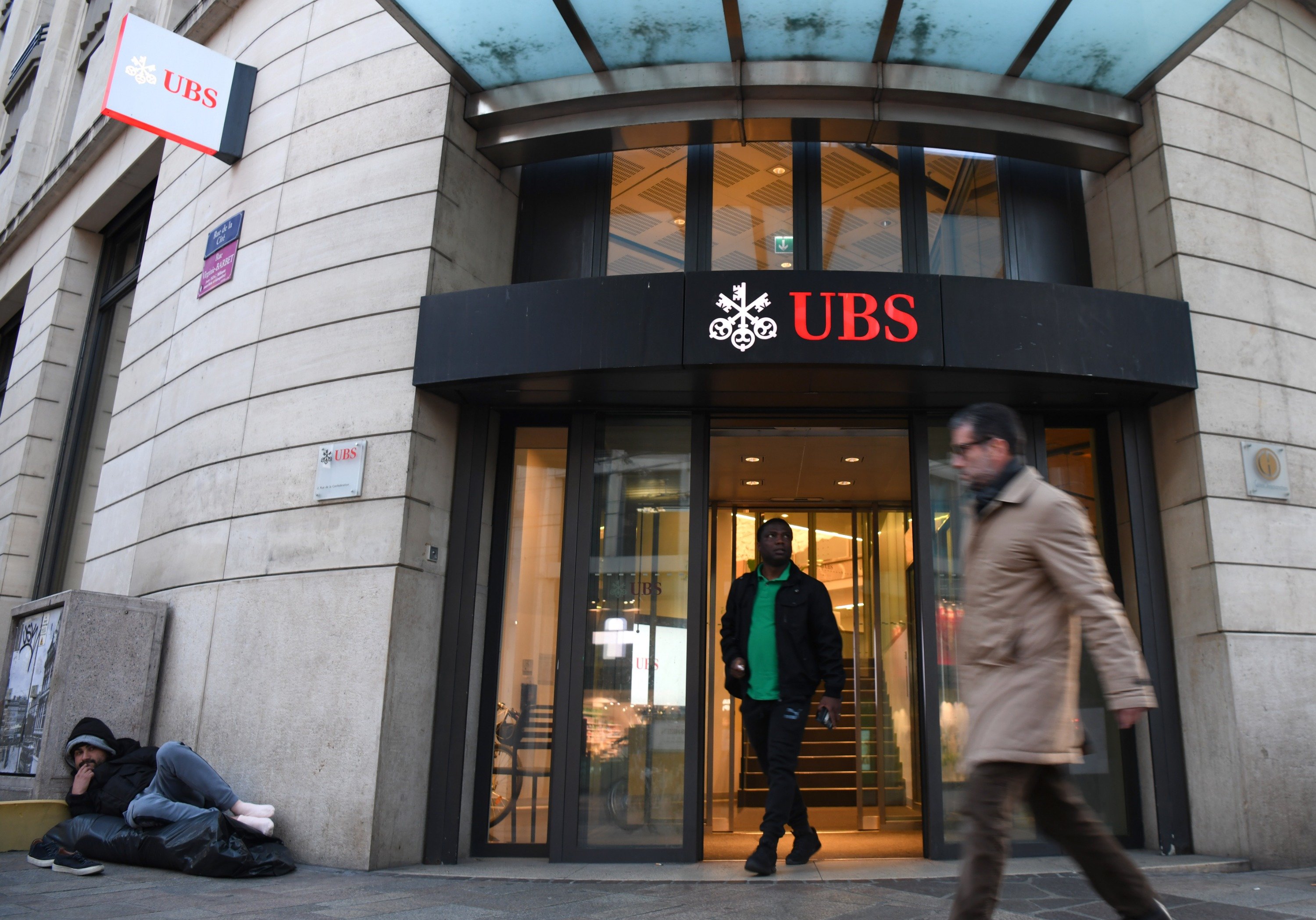 3月20日,在瑞士日内瓦,人们从瑞银集团门前走过。新华社记者连漪摄