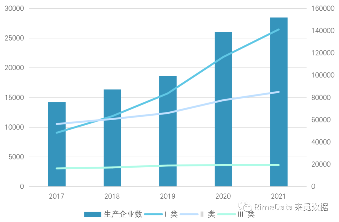 图表 3:中国医疗器械生产企业及各分类产品数量情况