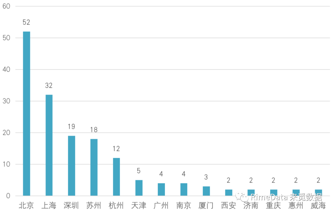 图表 14:各市医药健康领域获得过PEVC融资的专精特新小巨人数量