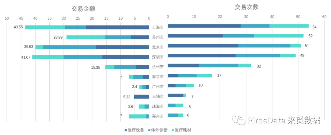 图表 13:2022年深圳市医疗器械投融情况(交易次数VS交易金额)