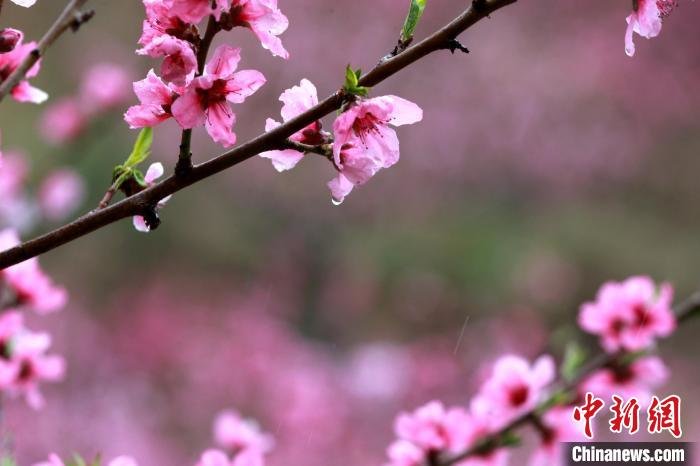 雨后桃花娇艳欲滴。 梁犇 摄