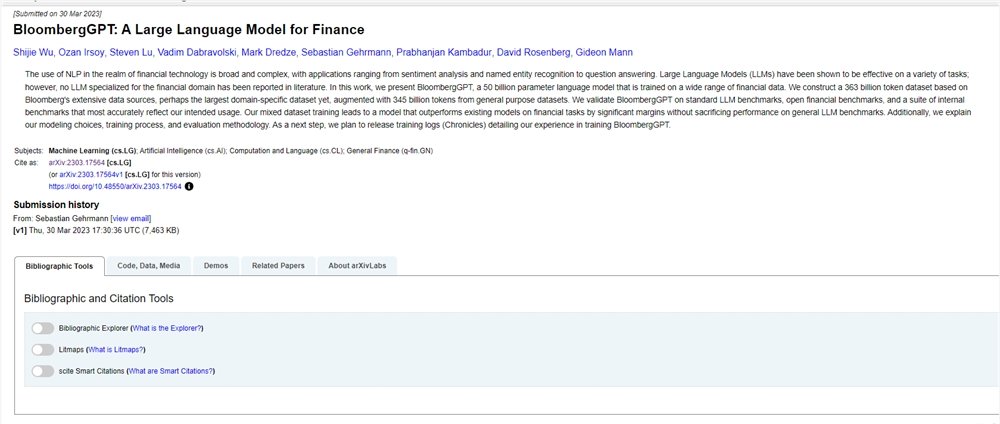 彭博由前纽约大佬 Mike Bloomberg 创立,是一家拥有量化新闻部门的金融数据公司,最近这家公司进军了AI大型语言模型领域,推出了BloombergGPT。该公司表示,该大语言模型(LLM)专门针对各类金融数据进行训练,以全方位支持金融领域的自然语言处理(NLP)任务。