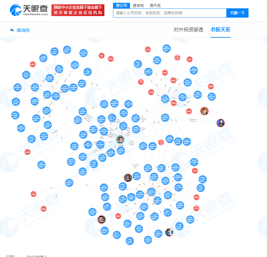 天眼查App显示,周鸿祎关联企业及社会组织有30余家,其中20余家为存续状态,包括三六零安全科技股份有限公司、三六零科技集团有限公司、北京奇虎科技有限公司、北京奇飞翔艺商务咨询有限公司、北京奇飞翔艺商务咨询有限公司、北京花房科技有限公司等,版图涉及科技、电商、体育、商务咨询、投资等。通过直接及间接持股,周鸿祎有150家企业实际控制权。