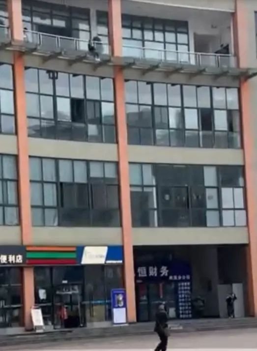 4月4日下午,成都的李先生在成都双流区金恒德汽配城拍下了这样一幕,一名女子疑似因情感受挫要跳楼。