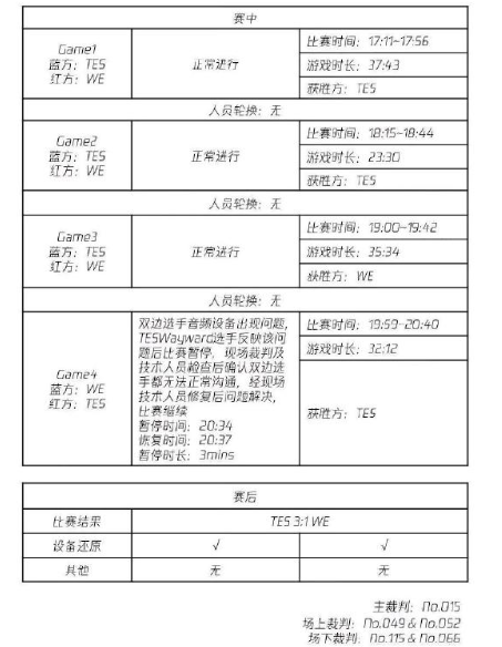 1.TES对战WE的暂停报告公布