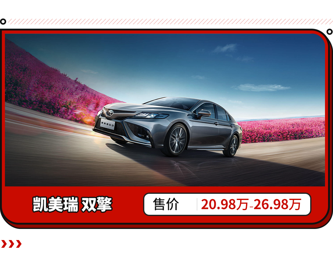 在丰田凯美瑞这个大家族当中共有多达14款车型,搭载了2.0L、2.5L以及2.5L混动系统,售价从17.98万覆盖到了26.98万元。其中,搭载2.5L混动系统的双擎车型共有5款,售价为20.98万-26.98万元。