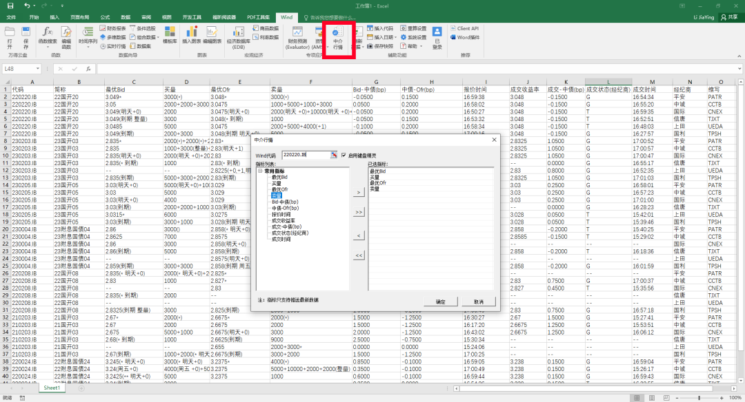 1、中介实时行情Excel插件功能,精选11个最常用中介行情指标,包括最优bid、买量、最优ofr、卖量、成交收益率等指标等;